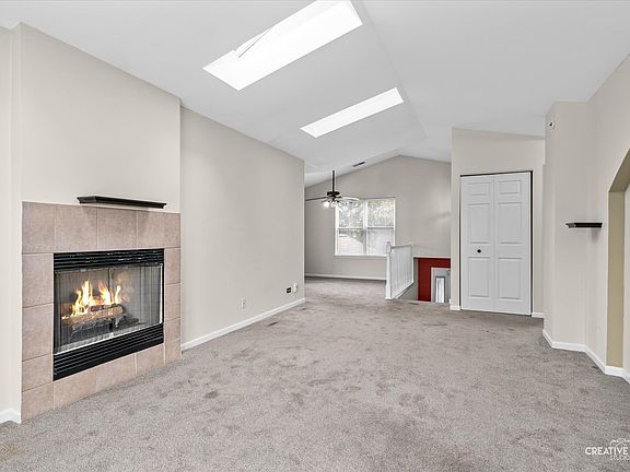 Stunning Former Builder's Model Condo with scenic pond views! Don't miss this opportunity to own a well maintained unit in a prime location being just MINUTES AWAY from I-88. This spacious condo boasts an abundance of natural light with FIVE skylights and soaring volume ceilings throughout the living room, kitchen, dining room, and primary suite. Step into the elegant living room, complete with a cozy fireplace, and enjoy seamless access to your private balcony that overlooks a serene pond-perfect for relaxing or entertaining. The well-appointed eat-in kitchen features plenty of cabinets and counter space. Kitchen flows effortlessly into the dining room, making it ideal for gatherings. Retreat to the primary suite, which offers a full luxury bath equipped with a whirlpool tub. A second full guest bathroom ensures convenience for family and visitors. This condo also includes a private entrance, a spacious two-car garage, and a full house fire sprinkler system for added safety and peace of mind. Schedule your showing today!