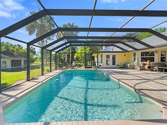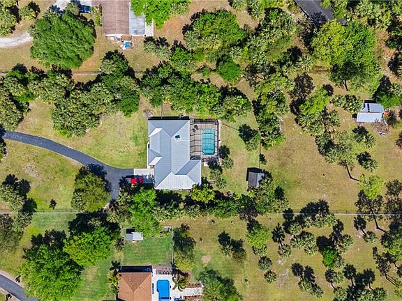 OVER 2 ACRES- WELL MAINTAINED POOL HOME- OPEN TO OFFERS! This beautifully maintained one-owner 3-bedroom, 2-bathroom, 2 car garage pool home sits on an oversized 2.27 acre lot, NO flood zone, NO restrictions—perfect for RVs, boats, or horses. A fully fenced-in property with an automatic electric gate ensures security and privacy. Step inside to find brand-new laminate flooring throughout the main living areas, a split floor plan, and a cozy wood-burning fireplace. The spacious primary suite features elegant oak wood flooring, private access to the lanai, and upgraded blinds for added style and comfort. The primary bathroom is complete with dual sinks, a separate tub, a walk-in shower, and a generous walk-in closet. The oversized guest bedrooms feature large closets and share a convenient Jack-and-Jill bathroom. All bathrooms have brand new faucets. Guest bedrooms have their own pocket door separating them from main living space, allowing upmost privacy for guests. The kitchen boasts stainless steel appliances, breakfast bar, wood cabinetry, and opens seamlessly into the living space. Throughout the home, upgraded blinds add a modern touch while enhancing privacy and energy efficiency.Major upgrades include impact-resistant windows and doors, a brand-new electrical panel, a whole-house reverse osmosis system, a new A/C unit, new water heater, whole house replumbed, metal roof, and a new drain field replaced in 2021. The exterior is equally impressive with an extended paved driveway, freshly painted exterior trim , and a lush irrigation system. Relax on the screened-in front porch or soak up the Florida sunshine in your private pool located on your oversized screened in lanai. The home also features an oversized two-car garage with built-in storage, offering ample space for tools, equipment, or hobbies. Located just minutes from shopping, dining, and easy highway access, this home offers both privacy and convenience. This one-owner home has been lovingly cared for and is situated in a highly desirable area with no HOA and no rental restrictions. MAKE AN OFFER TODAY!