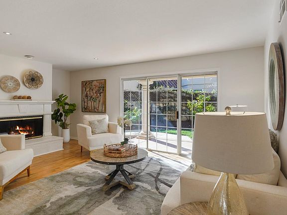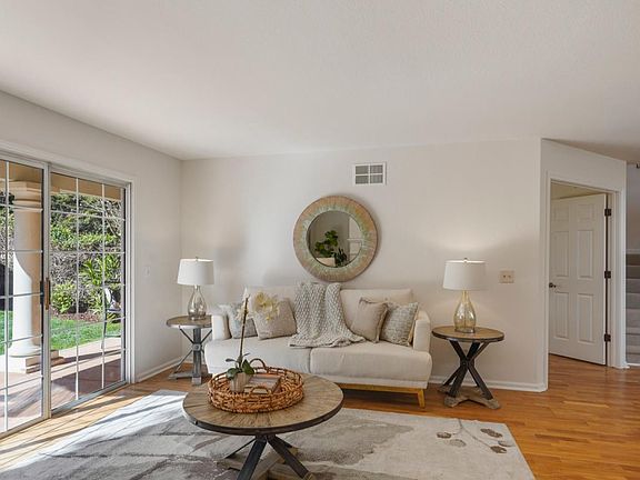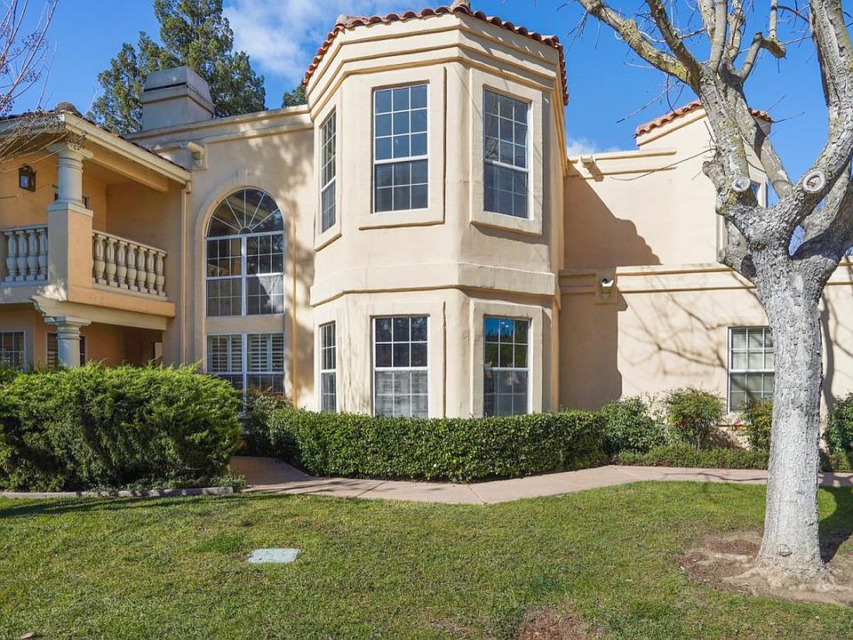Freshly Updated Single-family home in desirable Cuernavaca community of luxurious Mediterranean-style homes. Spacious two-story with 4 bedrooms and 2.5 baths. Approximately 2,249 square feet. Spacious living room with glass enclosed fireplace, sliding doors to a large, covered patio & yard. A formal dining area with two-story Palladian windows. Main level forth bedroom or possible office/den. Updated eat-in kitchen with breakfast bar and large casual dining area. Upstairs large Master Suite with built-in extra storage, fireplace, and a private covered balcony. Master bathroom with shower stall, tub and walk-in closet New carpeting throughout, just painted entire interior, re-finished hardwood floors. Attached 2-car garage. Wonderful outdoor spaces include a large, enclosed garden and covered patio, Community amenities include clubhouse, workout room, pool, two spas, barbecue area, exercise par course, tennis courts, children playground. Excellent Mountain View schools.