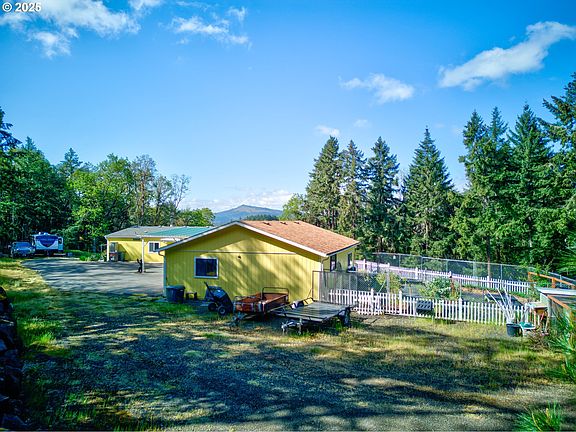 Peaceful and serene 5 acres in the heart of Melrose. This home is nicely updated with 3 beds 2 baths, lots of light, woodstove, and a large pantry area with tons of storage. The primary bedroom has a walk-in closet, bathroom, and exterior entry. Relax on the massive covered deck, or get some sunshine on the patio. Plenty of room to relax alone or with a group. The outdoor space is very private, there is a fenced garden area, a lower garden area and lots of trees. Garage has a brand new room, living quarters with french doors, closet, and full bath with walk-in shower. Space for your RV, toys, and pets! Truly has it all. Come see today.