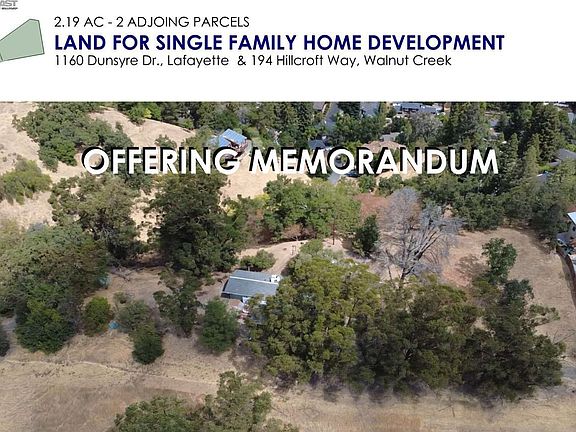 This property is to be sold in conjunction with the adjoinng property at 194 Hillcroft Way, Walnut Creek as a portfolio. Two parcels accumulating 2.19 AC, with potential of building multiple single-family homes. Please review the listing of 194 Hillcroft Way, Walnut Creek for additional information. Additional reports, maps, plans available upon request.