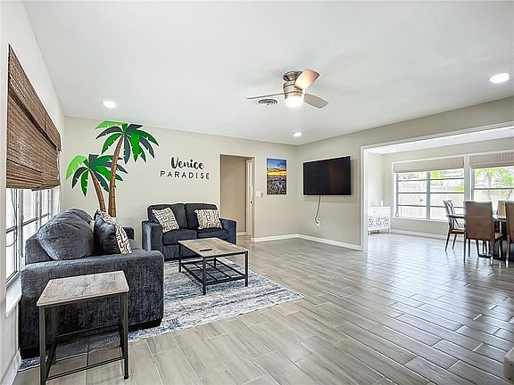 Welcome to this beautifully renovated and fully furnished 3-bedroom, 2-bathroom home in Venice, offering the perfect blend of comfort and Florida lifestyle. Featuring a modern open floor plan filled with natural light, this home is designed for both everyday living and entertaining. The spacious kitchen flows seamlessly into the living and dining areas, creating an inviting atmosphere. Step outside to your private oasis with a large pool and screened pool cage, surrounded by a fenced-in yard that’s perfect for pets, gardening, or outdoor gatherings. Conveniently located near Venice’s pristine beaches, shopping, dining, and schools, this move-in-ready, turnkey home combines style, function, and an unbeatable location. Plus, the seller is offering a $12,000 concession toward the buyer’s closing costs, adding even more value to this exceptional property.