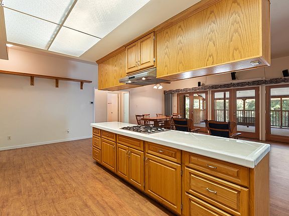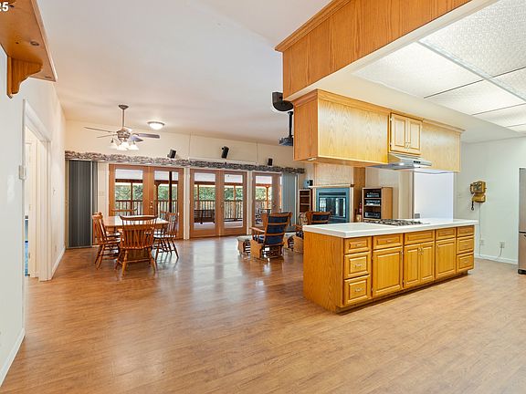Come see this private creekside retreat in a unique valley setting. Nestled in beautiful timberland on all sides, this spacious 3-bed, 2-bath, 1,914 sq. ft. home offers the perfect blend of privacy, comfort, and convenience. Set on a serene property surrounded by mature timber, the home welcomes you with an open-concept layout featuring vaulted ceilings, abundant natural light, and a wall of French doors leading to the expansive covered deck—ideal for year-round outdoor living. The kitchen is a cook’s dream with generous counter space, a center island cooktop, and warm wood cabinetry, seamlessly flowing into the dining and living areas. The primary suite offers a cozy wood stove, oversized walk-in closet, and en suite bath. Multiple gathering spaces make entertaining a breeze, from the great room to the screened porch overlooking the creek.Half of the oversized detached garage was built as an impressive workshop space, featuring a half bath, utility sink, wood stove, air conditioning, and 220 power—ideal for welders or other projects. With minimal effort, this space could also become a guesthouse, office or flex-space.For additional storage, a separate pole structure offers three covered bays, a single enclosed bay, and RV storage with power. Outdoor enthusiasts will love the year-round creek frontage to enjoy. The greenhouse could be restored by the right buyer for year round cultivation. Recent updates include a new roof (2025), all-new HVAC (2024), and recently serviced domestic water and septic systems. This property truly has it all: modern updates, versatile spaces, and serene natural surroundings. Call today to set up your personal tour of this incredible property!