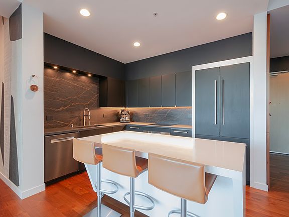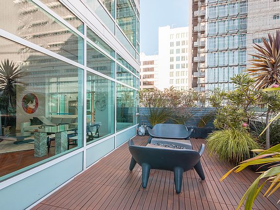 Parking space is available through a managed garage at an extra cost, along with EV charging. HOA offers free bi-monthly house cleaning, concierge services, 24-hour security, daily Philz coffee & tea service. #508 benefits from direct access to the 5th floor garden level features: a full fitness center, hot tub, sun deck with cabanas, yoga studio/ping pong room, fire pit, BBQ area, and a club room with chef's kitchen.