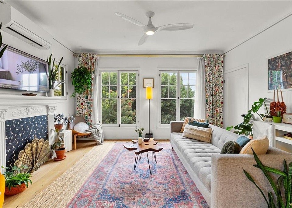 Step into this stunning 1924 Spanish upper 2-bedroom in an intimate four-unit community, thoughtfully restored to its original character. Perched above the street, this home is bathed in sunlight all day long through restored vintage casement windows framed by mature trees, giving the space a serene, treehouse feel. It’s the perfect setting to enjoy the outdoors from the comfort of your home, and plants absolutely thrive here.