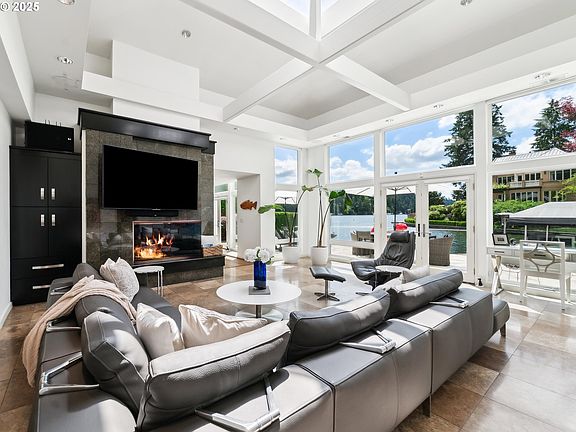 Exceptional main lake location, south facing, low bank on private bay. Penthouse alternative with walls of glass, soaring ceilings, entertainer’s floor plan with stone patio and wood dock at water’s edge. Great room concept, main floor bedroom and oversized primary suite with walk-in closet upstairs. Nestled between multi-million dollar estates. Just blocks to downtown Lake Oswego. Boat house, boat lift, putting green, Tesla car charger, plenty of parking and the BEST location on Oswego Lake’s Gold Coast. Selling agent is owner. Preferred showing hours = Monday - Saturday, 9am-11am.