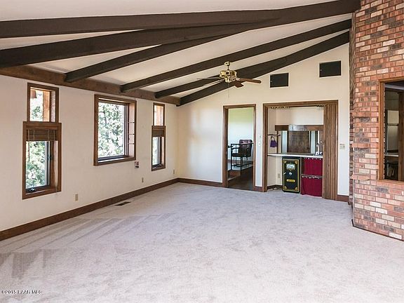 Perfect setting with billion dollar views towering over the City, Granite Mountain and Thumb Butte. Windows in every room that look out over these gorgeous views. Great floor plan with single level living and plenty of room for the family or friends. Large covered deck to enjoy outside dining and panoramic views. Window roll down hardcover blinds built into the upper Windows and sliding door. Great loft space for an office or to enjoy the peace, quiet and the VIEWS! Make it your private sanctuary! Fireplace and great room for enjoying the cool Prescott evening. Two bedroom suites for in law or extended company. Both of great privacy and views to the outdoors. House was designed for passive solar