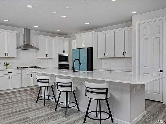 All the sparkle of new construction, none of the wait—and just 1.5 miles from Old Town Lafayette’s charming shops, cafes and community vibes. This dazzling, ranch-style home on a corner lot a half block from the community pool is not even two years old yet fully landscaped in front and back with beautiful flowering plants and rock gardens. You’ll love the peaceful life here, with hot air balloons regularly flying overhead, trips to the nearby Great Bark Dog Park and a surrounding network of trails. A large, three-car garage with high ceilings has ample storage, with a connecting mud room with built-ins and a coat closet. Single-level living has never looked so good: soft whites and grays run throughout the three bedrooms on the main level, including a corner bedroom that would make a great office—with Longs Peak views! Everything is bathed in cheery sunlight, including the living room’s built-in shelving and gas fireplace surrounded in chic, simple, floor-to-ceiling tile. Entertain from your huge kitchen island with counter seating, surrounded by pristine white cabinetry and premium appliances, including a glass-door refrigerator. For moments of repose, head to your spacious, high-ceilinged primary bedroom and gorgeous en suite bath with a soaking tub, quartz counters and a walk-in closet. From the main level, follow the upgraded stair rails down to an expansive basement with tall ceilings to be pleasantly surprised by a second living room with a kitchenette/bar, a large bedroom with a walk-in closet, a ¾ bath, and extra storage space.