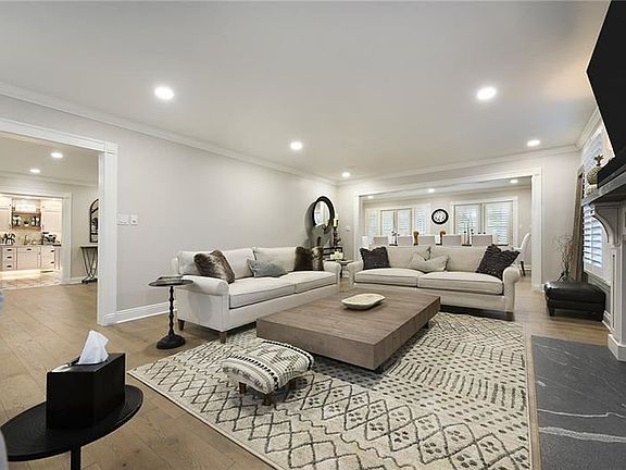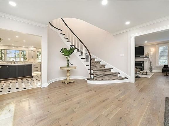 Majestically crowning a grand governor's drive, this 6 bed 5 1/2 bath center hall colonial is spectacular. A chef's kitchen exquisitely appointed with top of the line appliances and hardware is anchored with a generous granite island atop a stunning black and white marble floor. A series of west facing shuttered French doors line the open concept dining room emphasizing a view of the private backyard. Private office adorned with river rock fireplace and living room with additional fireplace complete the first floor. An elegant curved staircase centers the home's foyer waiting to make a stunning impact on all who come to call. Up, up and away on the second floor is an oversized master, bedroom, guest wing and laundry room. A spacious and private third floor houses two bedrooms and a full bath. Want to work out at home Just go downstairs to the finished basement where you will find a gym and so much more! A home you will love to call your own.