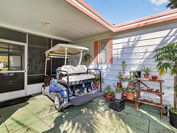 This charming DOUBLE WIDE 2-bedroom, 2-bath PARTIALLY FURNISHED mobile home nestled in the 55+ community of IMPERIAL TERRACE WEST (ITW) IN TAVARES has had many upgrades in the last two years! There is NEW FLOORING, FRESHLY PAINTED ROOMS throughout, LAMINATE KITCHEN COUNTERS, KITCHEN CABINETS, CEILING FANS, and STAINLESS STEEL KITCHEN APPLIANCES. A new PANEL BOX has been installed for the electrical, and outside a CHAIN LINK FENCE encompasses the back and side yards for your furry friend. The manicured landscaping has a sprinkler system where water is pumped in via a WELL. The WASHER and DRYER are inside the home. The CENTRAL HEATING and A/C works well and has been serviced every six months. The ROOF is leak free! There is a REFRIGERATOR WITH FREEZER and a separate FREEZER inside the WORKSHOP (which also has a SINK) that is included with the home. The CARPORT houses two vehicles easily, with additional parking in the driveway. Other amenities in this GOLF CART friendly community include a large CLUBHOUSE with SHUFFLEBOARD, indoor POOL and JACUZZI/SPA, and BOAT DOCKS and TRAILER STORAGE for a low monthly fee. The best part is you OWN YOUR OWN LAND!! The HOA fees are super low - $25/month!! The tools in the WORKSHOP are not included with the home. The personal effects/decorations and living room tables are not included with the home. The GOLF CART is being sold separate from the home for $2500. Schedule a tour today!!
