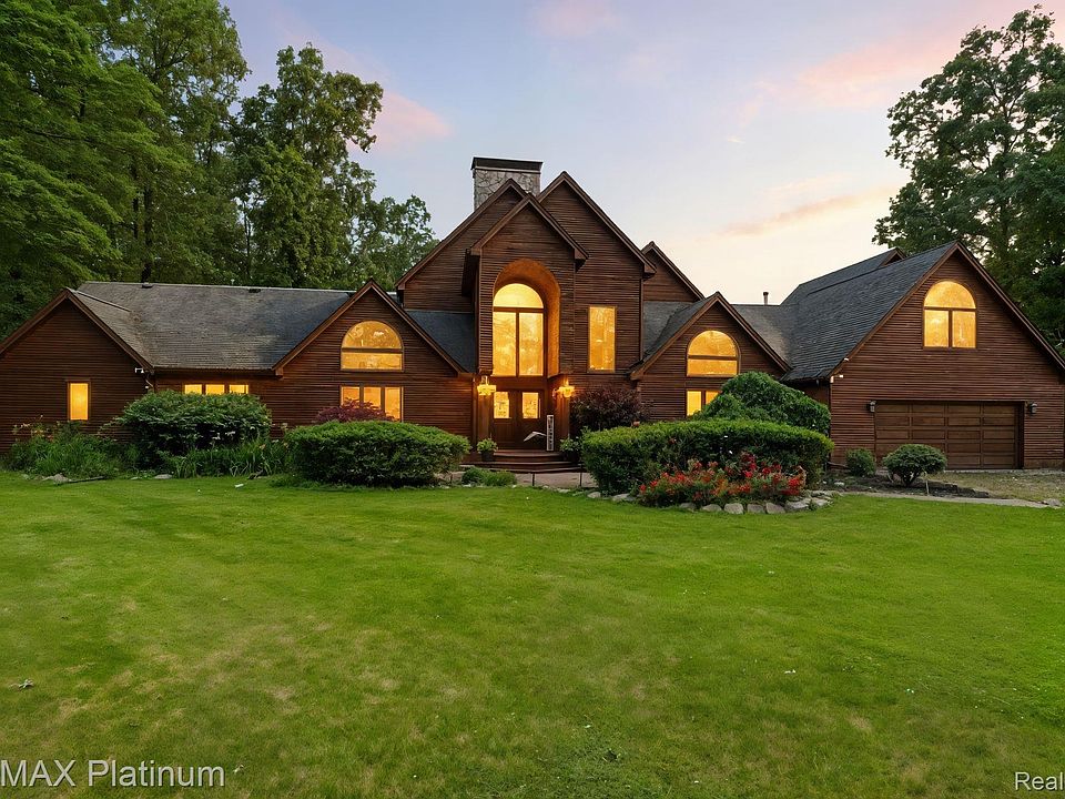 Inside, you’ll find 4,875 square feet of thoughtfully designed living space. The living room is warm and inviting, featuring vaulted ceilings, a timeless stone wood-burning fireplace, and walls of windows that frame the surrounding trees. The kitchen has been fully renovated with a built-in electric self-cleaning convection double oven and a reverse osmosis system. The spacious main-floor primary suite includes a walk-in closet and a private bath. Upstairs, you’ll find three additional bedrooms — including two loft-style spaces: one with its own fireplace, and a second with a private balcony that’s perfect for a game room, office, or quiet retreat. The fifth bedroom is located on the lower level, offering flexibility for guests or multigenerational living. Step outside to enjoy the expansive deck, large saltwater pool, and hot tub — perfect for relaxing or entertaining. The backyard also features a bass-stocked pond and a 30x40 pole barn with electricity, plus exterior wiring for 30AMP RV/Camper service — ideal for added convenience and flexibility. With room to roam and thoughtful updates throughout, this home offers the perfect balance of privacy and practicality. Don’t miss your chance to make it yours!