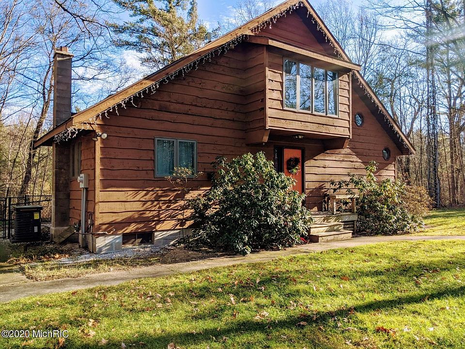 Down a quiet dirt road and a winding driveway sits this cedar chalet on almost 10 acres. 380 Feet on Sand Creek right at the back of Browns pond. Home is 3 bed, 3 bath and nearly 3000 square feet when you include the finish walk out basement! Cathedral ceilings, huge master bedroom with view of the water. Easily could add a 4th bedroom in the loft office area as well. Close to town but way way off the path in desirable Blue Lake Township Muskegon County. Over 100 norway spruce, apple trees, annual food plots and trails throughout. Trout in the water and great Deer hunting right out your front door. The home is super efficient with a basement wood stove feeding the forced air furnace. Also a pellet stove in the garage, workshop and dog kennels. The deer blind and tower can be purchased for 1000. Read a detailed description of the property improvements in the document section. Any offer is contingent upon seller getting approval for their next homesite by Jan 8th 2021