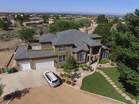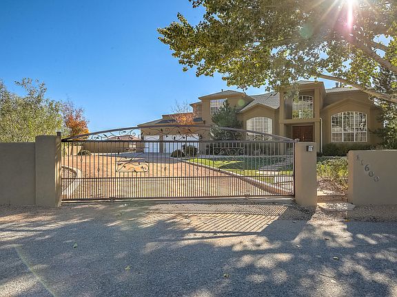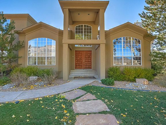 This cozy North Albuquerque Acres home on a cul-de-sac offers a great floor plan with large open rooms. Walk-in to a wall of windows capturing breathtaking unobstructed views of the Sandias. The downstairs area has a living area, 3 bedrooms, full bath, laundry, and access to the yard, PERFECT FOR KIDS OR IN-LAWS. The large master suite offers a sitting room, a two-sided fireplace, grand master bath, and His and Her walk-in closets.