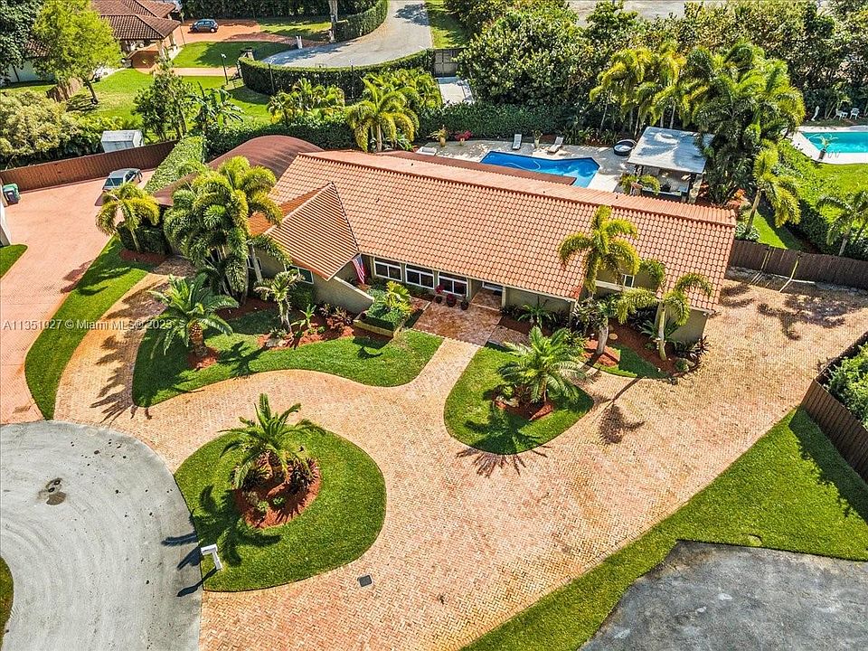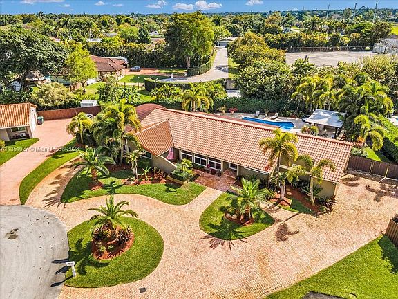 This stunning property sits on a 19,199 sf lot and boasts 4 bedrooms, 2.5 bathrooms, and ample living space spread over 2,552 sf. As you enter through the double doors, you are greeted by an arched picture window looking through french doors to the pool deck. The kitchen features marbled countertops, stainless steel appliances, and plenty of cabinet space. A large family and dining room provides a cozy space for relaxing or entertaining guests. The bedrooms are spacious and well-appointed, with plenty of natural light and closet space. The backyard features a large covered patio, a pergola with outdoor kitchen, a sparkling pool and lush landscaping, creating the perfect oasis for enjoying the beautiful Miami weather. Also features a covered pad to park a boat or RV and has a 2 car garage.