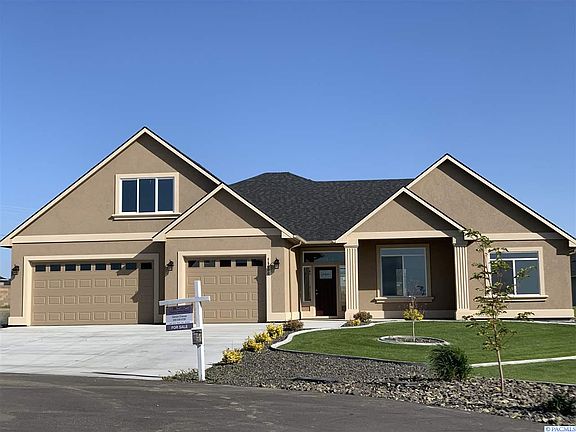 Eagle Crest Estates is just minutes from I-82 and points east or west. This brand new stucco home has been built new in 2018 by E.K. DEVELOPMENT. A very fine builder of many new homes in the area. Large kitchen island with White Carrara Marmi Quartz counter tops. Lovely Rustic Birch stained cabinets throughout. Two pantry areas. New double door stainless refrigerator and a gas range/oven. It has a large master suite with a large glass enclosed tiled shower and a separate bath tub, plus a large walk in closet. Bathrooms throughout the house are in a light gray colored tile. 28x34 three car garage with a man door. Electronic controlled underground sprinklers. Could be a 5 bedroom if necessary.