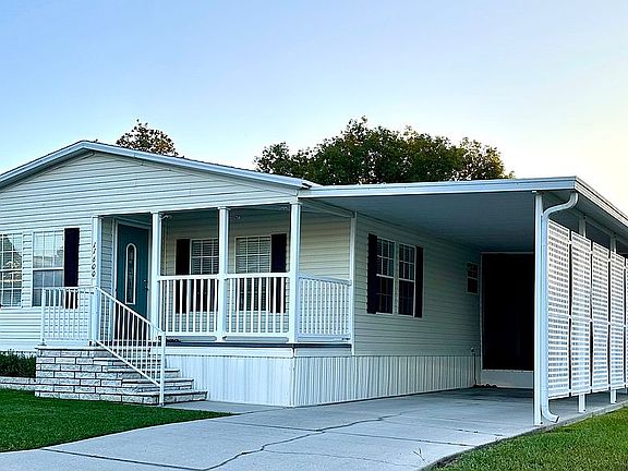 Beautiful newer mobile home located in Fisherman’s s Cove 55+ Mobile Home Park in Dade City, FL. This 2006 Fleetwood is a 58’ length double wide with approx 1624sf. This 2bed/2bath home has it all! Large open floor plan. Spacious kitchen with an island/bar and plenty of storage. Living Room is huge with vaulted ceilings, and a beautiful barn wood accent wall. Vinyl plank flooring throughout. Many Thermopane windows providing plenty of sunlight, making the home bright and airy, Large Master Bedroom with a huge walk-in closet. Large Master Bath with double vanity and walk-in shower. Second Bedroom with good-sized closet. Guest Bathroom with tub. Separate indoor Laundry Room.Open Front Porch, and large Screened Lanai with electric. Large Attached Shed/Workshop with workbench. Carport with lattice for added privacy. New Shingled Roof 6/2023. HVAC with smart thermostat 12/2021. Park Amenities include heated pool, clubhouse with gym, pool table, library, shuffleboard, and fishing pier on adjacent Lake Pasadena. PLEASE NOTE: Home is on leased land with lot rent of $615/mo, and includes garbage pickup and sewer. Park requires background check. Home may not be relocated from the park, and renting the home is not allowed. Come and enjoy all FL has to offer!