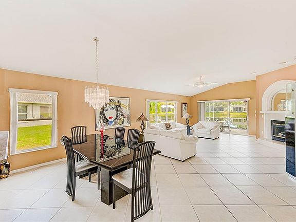 Fabulous Home with Serene Water Views in a Peaceful Cul-de-Sac! Welcome to this inviting home tucked away in a sought-after 55+ community. As you step inside, you’re greeted by calming water views that draw your eyes through the dining and living areas, highlighted by high ceilings and a beautiful fireplace. Perfect open space for relaxing or entertaining. The spacious kitchen is ready for its next chef, featuring ample counter space, plenty of storage, and a large breakfast nook framed by a lovely bay window. This home offers 2 bedrooms, 2 bathrooms, and a large den that can easily be transformed into a third bedroom, office, library, or sitting room. Continue to enjoy the water view from both windows within the primary suite, as well as a huge walk-in closet. The second bedroom, located at the front of the home, provides privacy and comfort for guests. Additional features include a two-car garage, a dedicated laundry room, and a screened-in patio perfect for unwinding while overlooking the peaceful pond. Roof and AC were new in 2024. Enjoy resort-style living with community amenities that include a private Clubhouse with restaurant, golf, a fitness center, swimming pool, tennis courts and more. Experience peaceful living surrounded by natural beauty — your next chapter begins here!