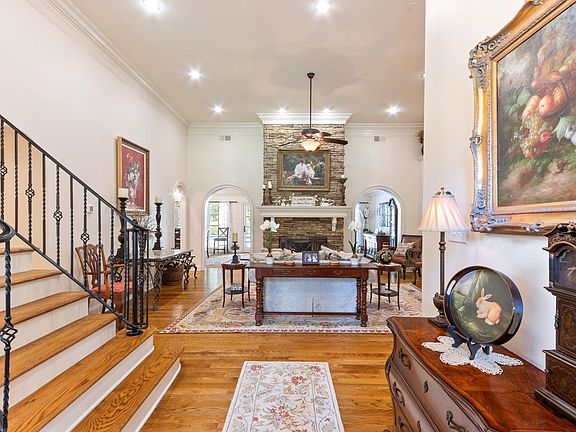 Custom designed and quality constructed by Hunter Ryan, this home impresses throughout it's thoughtful interior & outdoor spaces. Offering a perfect floor plan with 4 bedrooms & 3.5 baths down, and an oversized 5th bedroom (or bonus) w/full bath up, the capacious entertainment spaces in between offer light-filled rooms, tall, smooth ceilings, custom heavy moldings, a freshly painted interior, beautiful new lighting, stone fireplaces & a kitchen that delights! The covered rear porch offers a double sided fireplace, an outdoor kitchen, a heated/cooled 1/2 bath, with views of the glistening pool, fountain, and lush mature landscaping. There are 2 double side-load garages + a detached insulated drive-thru garage w/half bath & water heater that can be finished to expandable space, or enjoyed by the man of the house. Temp controlled storage in main garage & expansive walk-in attic/storage. Nestled on 4+ acres surrounded by nature, with deer and hummingbirds visiting daily. A MUST SEE!!!