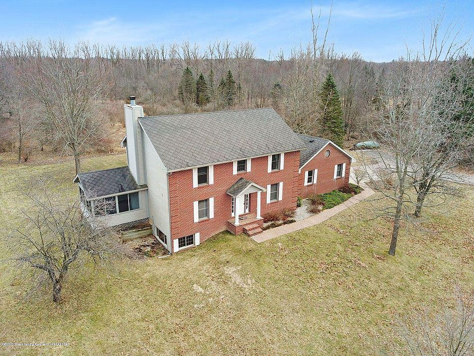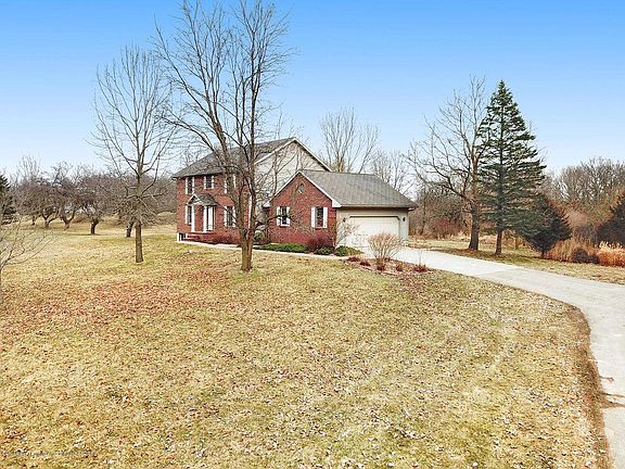 7.9 acres of private country setting with orchard of apple, pear and cherry trees, chemically free gardening space for 19+ yrs, woods for hunting and mowed trails. Enter at the 2 story foyer or garage entrance mudroom w/bench (plumbed for 1st floor laundry behind shoe bench). Open floor plan incorporates living room with fireplace, built in book/display shelves and access to screened porch retreat; Kitchen with island, all appliances and walk-in pantry; and dining room 3-door walkout slider to deck. Nice character in hardwood floors on 1st floor and many vantage points with views of nature. Upstairs, there are 4 BRs and 2 Full baths. The spacious master has nice walk-in closet and dual sink vanity. Recreation and workout space in lower level. Seller is offering $5,000 for carpet allowance.