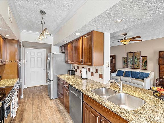 Check out this classically upgraded 2-Bed, 2-Bath first floor unit The Marquesa. This impeccably maintained unit boasts real wood cabinetry & granite countertops in both the kitchen & bathrooms, complemented by ceramic tile flooring throughout the main living area. Neutral paint, crown molding, & storm panel protection add to the home's appeal, while the in-unit washer & dryer offer ultimate convenience. Located in a gated community with 24/7 security and cameras, Marquesa offers a wealth of amenities for residents. This investor-friendly community allows immediate rentals with a minimum lease of 6 months. Situated directly across from Pembroke Lakes Mall, this home is also near supermarkets, restaurants, banks, & a hospital, making it an ideal choice for both owners and investors alike.