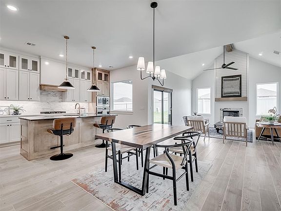 Former builder model home that's loaded with upgrades and sits on an awesome corner lot with NO ADJOINING NEIGHBORING LOTS! Reserved community area beside the home, so you'll never have a neighbor immediately beside or behind you! Incredible addition with some of the best community features in Mustang, including a large pool, playground, clubhouse with high-end fitness center, and a basketball court! Pool and clubhouse require homeowner keycard access to prevent unauthorized use. THE FLOORPLAN: 3 bedrooms downstairs, including the master bed. Huge kitchen with a large island with quartz counters, upgraded appliances including in-wall oven with air fryer function, cabinets to the ceiling, a large pantry and barstool seating space that backs to the dining space. Great room tucked perfectly at the back to maximize room for furniture, includes a custom-designed tile fireplace surround and shiplap above that extends up to the cathedral vaulted ceiling. UPSTAIRS are 2 more bedrooms, another full bath and a sprawling second living area! Incredibly flexible floorplan in the perfect spot. QUALITY MATTERS, and there's been no compromise here. Engineered post-tension foundation, 97% efficient, experly designed heat and air system, tankless water heater, whole-home air filtration system, Hardie masonry siding and trim, 100% LED lighting, extra insulation. TONS of design upgrades, would have been tens of THOUSANDS more to custom build this same house. Fence, blinds and garage door opener already included. ONLY $500 EARNEST MONEY FOR A LIMITED TIME!