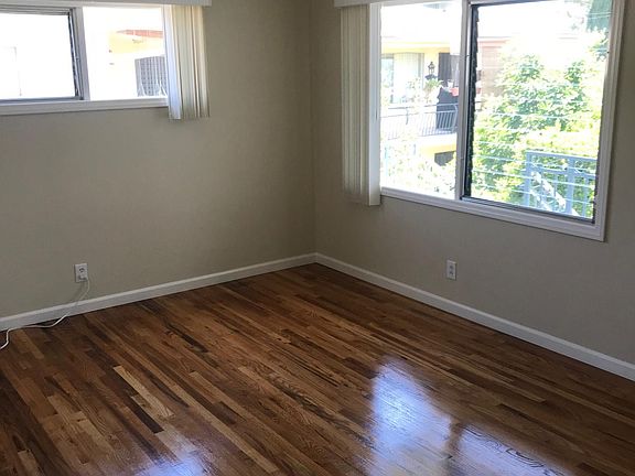 The apartment is fully updated, virtually everything is new or refurbished within the past few years. Kitchen: stainless steel range, refrigerator and sink, granite countertop/backsplash, tile flooring and fixtures; bathroom: new tub & shower tile, new tile flooring, new vanity/sink, medicine cabinet, light and fixtures; rest of unit: original hardwood floors refinished, crown molding and base-boards, ceiling fan, A/C. Lots of closet/cabinet space. Exterior of building is freshly painted and lushly landscaped. On-site laundry and carport parking. Upper unit. Water and trash paid. Cats accepted.