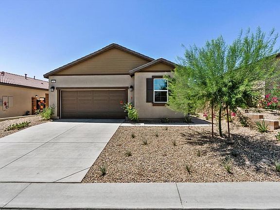 Enjoy breathtaking mountain views from this beautifully designed 3 bedroom, 2 bath home located in the gated community of Skyborne. The open floor plan is ideal for entertaining, featuring tile and carpet throughout, granite countertops, stainless steel appliances and a plethora of cabinetry for ample storage. The spacious kitchen flows effortlessly into the living and dining areas, creating a bright and airy atmosphere. With a low HOA and a backyard ready for your personal touch, this home offers both comfort and potential. Located just minutes away from vibrant downtown Palm Springs and just a short drive to Yucca Valley and Joshua Tree. Shopping, dining, entertainment, hiking and much more are right at your doorstep!