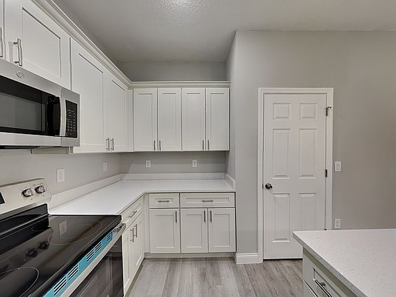 Covered lanaiModern kitchenWood-like vinyl plank flooringStainless steel appliancesLarge master bedroomWalk in closetDedicated laundry room