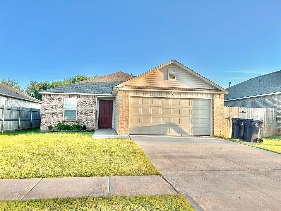 This beautiful single-story home offers 3 bedrooms, 2 full bathrooms, and a 2-car garage on a spacious corner lot in a quiet, family-friendly, and desirable Yukon neighborhood (Redstone Ranch). Featuring fresh paint, luxury vinyl flooring, and plush carpeting throughout, this home is filled with natural light and includes a fenced large backyard and covered porch perfectly blending comfort, style, and everyday convenience. The open-concept floor plan includes bright and spacious rooms, a living space, a modern kitchen with ample cabinets, a spacious pantry, a breakfast bar, sleek appliances (gas range, dishwasher and microwave), plus a private primary suite with a walk-in closet and a full bathroom perfect for both comfortable everyday living and hosting family and friends.