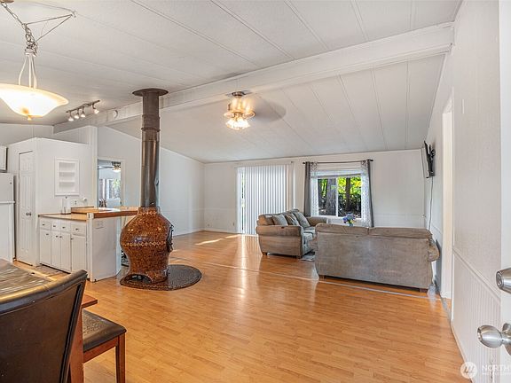 Price Adjustment! Welcome to Shiloh Park! This beautiful ALL AGES community home offers a roomy open-concept floor plan with warm hardwood floors and bright white cabinetry that creates a fresh, inviting feel. A unique wood stove sits at the heart of the living and kitchen areas, adding cozy charm and character. With three bedrooms and two full baths, there is plenty of space for comfortable living. Enjoy the outdoors with a spacious yard, circular driveway and a relaxing deck, Come see why this home is the perfect blend of comfort and convenience in the welcoming Shiloh Park community!