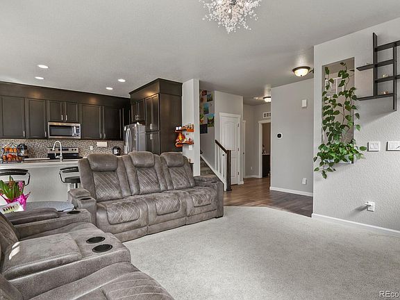 This home is a MUST SEE…almost new condition with smart home integration and designer upgrades throughout! The bright, open main level boasts a living room with gas fireplace and gourmet kitchen with upgraded cabinets, granite countertops, beautiful tile backsplash, stainless steel appliances and built-in pantry cabinet drawers. The primary bedroom ensuite is located on the main-floor with double sinks and granite counters in the bathroom and a large walk-in closet. Two oversized bedrooms and a beautiful full bathroom complete the upper level. Don’t miss the extensive smart technology integration including custom blinds, lights, thermostat, doors, security system, cameras, and the fireplace! Even the two-car garage has been upgraded and provides year-round workspace, with a heating/cooling mini split unit, epoxy floors, two large storage cabinets and an electric car charging station. This home has impressive storage, with upgraded shelving in every closet, a bonus space that is perfect for a kid’s play area, and a huge crawl space. The laundry room has upgraded cabinetry and the washer and dryer are included with the home. Enjoy the weather on your private, enclosed patio overlooking the beautiful community trails— all landscaping and snow removal is included for low-maintenance living or a “lock and leave” lifestyle! Quiet neighborhood in a fantastic location— two blocks from the park, 5 minutes to downtown Parker and 15 minutes to DTC.