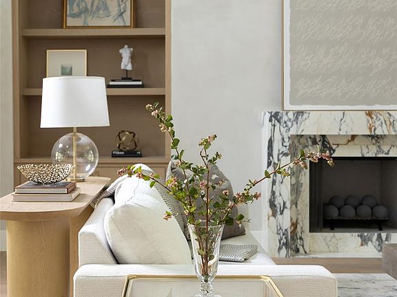 • Gourmet kitchen with custom white oak cabinets, Wolf/Subzero appliances, Calacutta marble