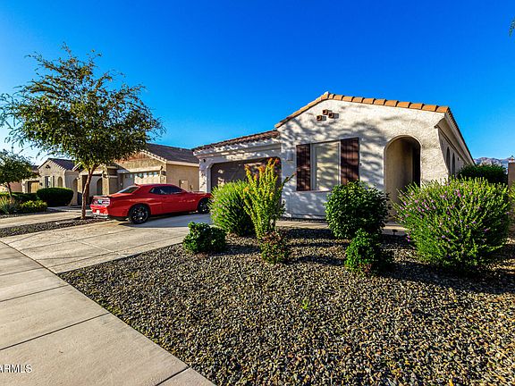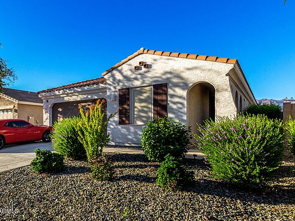 This energy efficient Lennar home also includes the following upgrades: a beautiful security screen door, ceiling fans, sunscreens, and driveway extended 2ft each side located in Peralta Canyon in Gold Canyon! A covered porch leads to a custom security door with sunscreens and opens to a captivating open floor plan with high ceilings, recessed lighting and durable tile flooring as well as plush carpeting in all the bedrooms. 5 interior ceiling fans have been added to this lovely home and one on the patio creating wonderful airflow inside and out. The impeccable kitchen comes with granite counters, abundant wood cabinetry with crown molding, stainless steel appliances including stove, microwave, dishwasher and LG Refrigerator w/ 2 ice makers (purchased in 2024), reverse osmosis, a pantry and an island with a breakfast bar (stools included). All the appliances convey, including the refrigerator in the garage, washer and dryer. The primary bedroom features an ensuite with dual sinks, walk-in shower and a walk-in closet. Each bathroom has a handrail installed in the shower. The backyard boasts majestic mountain views and a spacious extended patio which include patio furniture and grill! Garage floors have been conveniently coated. Soft water system installed!! Sunscreens have been added throughout!! Gold Canyon offers majestic mountain views of the Arizona desert with award-winning golf courses and walking trails for outdoor enthusiasts. Close to shopping and dining. Come and see!!