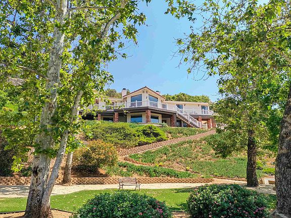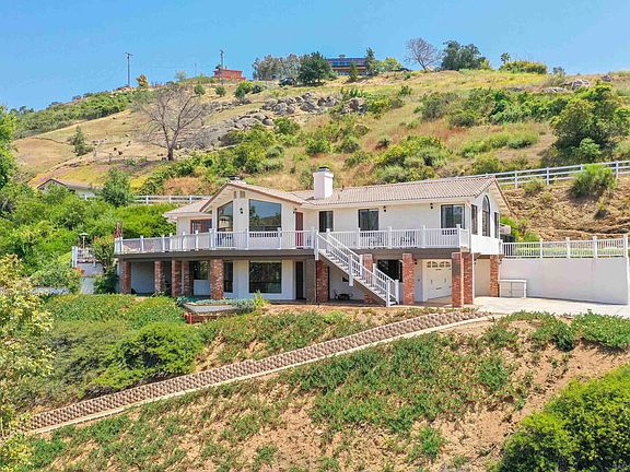 Welcome to this secluded slice of paradise in Eucalyptus Hills. This custom-built home offers privacy and serenity, with a picturesque setting and beautiful views. The property boasts almost 2 acres of land, creating a park-like atmosphere and plenty of outdoor living areas for all your entertaining needs. This home has it all, including a full solar power system (owned and paid off) and a new HVAC system installed in 2020. The master bedroom and bathroom were renovated in 2021, featuring a walk-in shower, tub, and built-in closets. The upstairs living area has a cozy fireplace and a waterfall, and there is a dog run on the upper level. In 2022, an above-ground cryo-therapy spa was installed, perfect for relaxation and recovery. The house also includes a 1400 sq. ft. building with three doors, perfect for an ADU, shop, or RV storage. There are four entries and could be separated into two living spaces. The property has a new roof underlayment, water heater, and water softening device. It offers plenty of parking space for 10+ cars or multiple RVs. This home offers endless possibilities for customization and flexibility. It's perfect for those seeking a unique and luxurious living experience. Don't miss the chance to make this property yours and enjoy the peaceful lifestyle it offers!