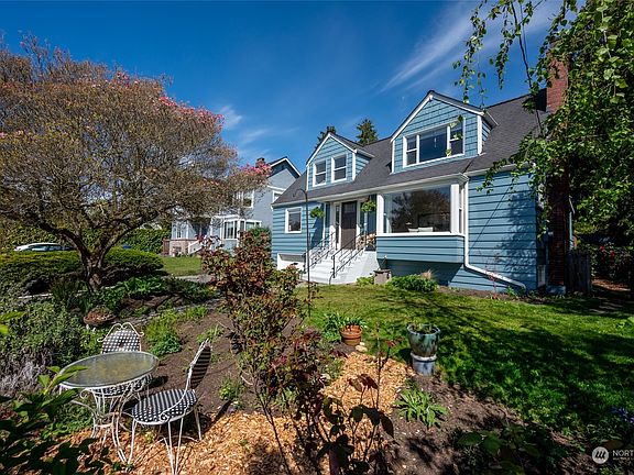 Come experience a lightness & brightness that can only come from being atop a broad west-facing slope. Super solid Cape Cod on a secluded street. Enjoy glimpses of the Olympics from the huge private upstairs primary retreat. Indulge your culinary passions in an expansive, contemporary kitchen. Host gatherings effortlessly in the generous circular layout that transitions seamlessly to the deck & expansive level yard, perfect for further gardening or athletics. Multiple possibilities for studios, offices or perhaps a DADU. Recently refreshed with fresh paint and carpeting, this home offers a delight from day-1. Near Carkeek Park, the library, and an array of restaurants, this residence offers the ideal blend of tranquility & urban convenience
