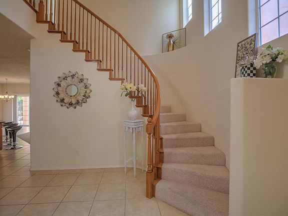 No Pid.! Fantastic Floor Plan, Immaculately Maintained! Large 2 1/2 garage.size. Granite counters, wonderful fireplace (Gas Light). Great Room with Dining area opens up to beautiful backyd with Gazabo to enjoy visiting or dinning outside.. Kitchen opens to Great room with Lg.Island/ Bar eating area.. 4/5 bedrroms.,,4 bathrooms.(2 full plus 3/4 and 1/2). Beautiful Curved stairway leading upstairs, Master has deck with great view of mountains. Master includes Large full bath, Huge closet, double sinks. 2 other bedrms each have their own baths. Refrigerated Air. This is a lovely home, perfect for family and guests! Appraisal shows 3110 Sq feet. Oversize garage. Near Kirtland Air Force Base, Sandia Labs, Tech Corridor, Costco, Easy access to I-40. Solar panels optional