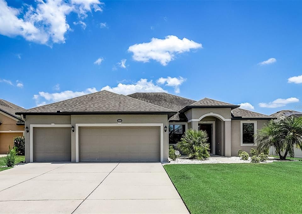 One or more photo(s) has been virtually staged. Welcome to the Enclave at Southfork. This IMMACULATE energy efficient 4-bedrooms, 2-bathrooms with granite counters, Office/Flex Space / 3 car extended garage is situated on picturesque pond with breathtaking CONSERVATION VIEWS. This home is situated on the largest lot in the development. More than ¼ of an acre. Boasting over 2254 square feet your attention will immediately be drawn to the gorgeous CURB APPEAL with an oversized and extended driveway. Built in 2017, this home has space for everyone. This WELL-MAINTAINED gem is filled with LAVISH FEATURES including High ceilings & easily maintained tiled floors & Pergo throughout. The impressive OPEN CONCEPT kitchen is loaded with UPGRADES including GRANITE counters, high end STAINLESS APPLIANCES, staggered 40-inch cabinets, large ISLAND with breakfast bar & cafe nook overlooking the great room. Extra features include – whole house water softener system & tinted hurricane windows & sliding glass door. This beautiful and expansive Fully fenced extended back yard with ample space for a swimming pool outdoor kitchen etc. is a designer’s dream. South Fork has plenty of amenities, including a playground, sport court, tot lot, pool and clubhouse, dog park and sidewalks for running, walking or bike rides. Minutes to major roads… Hwy 301, I-75, Hwy 41. Tons of restaurants, shopping, YMCA, waterfront county parks, VA and St. Joseph’s hospital are all nearby as well. Come check out this beautiful move-in ready home and make it yours!