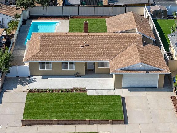 Beautifully updated four bedroom, three bathroom Ranch-style home located in the tranquil and highly desirable community of Lake View Terrace. Blending classic charm with modern upgrades, this meticulously maintained residence offers comfort, style, and thoughtful design throughout. Impressive great room, where soaring beamed ceilings create a sense of volume and airiness, bathed in natural light. The separate living room features a striking brick fireplace, perfect for cozy evenings and relaxed gatherings. The custom kitchen is a standout, offering beautifully crafted cabinetry, a brand-new cooktop, hood/vent, and refrigerator, designed to inspire any culinary enthusiast. New recessed lighting and upgraded switches and outlets add a refined, contemporary touch throughout the home. All three bathrooms have been tastefully remodeled with stylish finishes, complementing the brand-new flooring and fresh interior and exterior paint. Copper plumbing, newer dual-pane windows, and a newer A/C system ensure peace of mind and year-round comfort. Outside, enjoy two separate driveways, a 2-car attached garage with a brand-new door, and professionally landscaped front and back yards. The lush new sod is kept vibrant with an automatic sprinkler systems, offering an ideal backdrop for outdoor living. Enjoy California living at its finest with a sparkling pool featuring new plaster, new tile, and brand-new pool equipment--ready to enjoy from day one.Located in a peaceful, scenic neighborhood with easy access to parks, equestrian trails, and major freeways, this Lake View Terrace gem is the perfect place to call home.