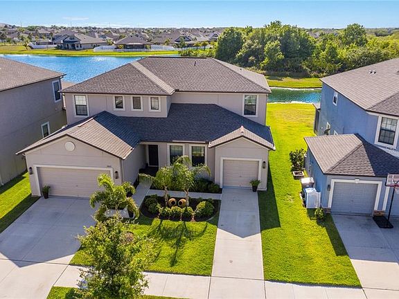 Located in highly sought after Southfork one of Southwest Florida's fastest-growing areas of Riverview, this like-new, six-bedroom residence impresses with sweeping lake views, upgrades and attached in-law suite. Two levels of thoughtfully planned living provide the utmost in comfort for all generations. Enter the shared space of the living room and kitchen, where abundant natural light and vast landscape add warmth to the home. An ideal venue for everyday meals or entertaining, the kitchen offers granite surfaces, stainless steel appliances, large pantry and an island with bar seating. Enjoy casual meals in the bright breakfast nook and more formal affairs in the dining area. A charming staircase leads to a flexible loft, laundry room, and five generously sized bedrooms, including a master suite with spa bath. The main-level, in-law suite with separate entry, single-car garage access, living room, kitchen and full bath rounds out the sleeping quarters. Enhancing an already stunning vista is the expanded and screened paver lanai, overlooking a stunning lake, designed for the quintessential Florida lifestyle. Dine alfresco under the covered area, bask in sunlight or share stories around the firepit. Another two-car garage offers plenty of storage. Southfork is an amenity-rich community within an A-rated school district with resort-style pool, playground, basketball court and lovely areas for walking. Conveniently located between Tampa and Sarasota, you'll never lack amenity or adventure.