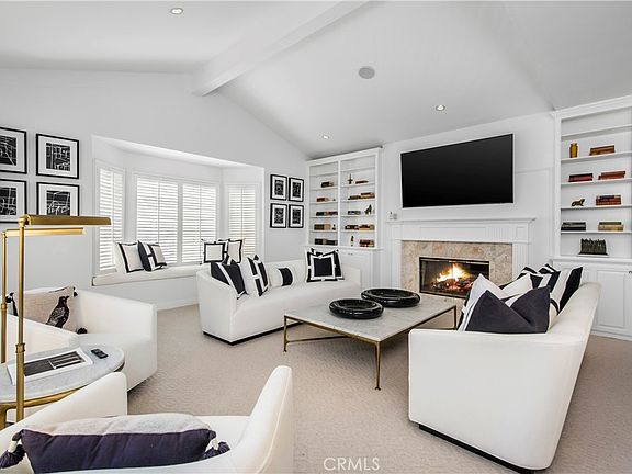On the lower level, a secondary family room with a cozy fireplace opens onto a sun-kissed wraparound terrace — a perfect setting for indoor-outdoor entertaining, afternoon lounging, or evening gatherings under the stars.