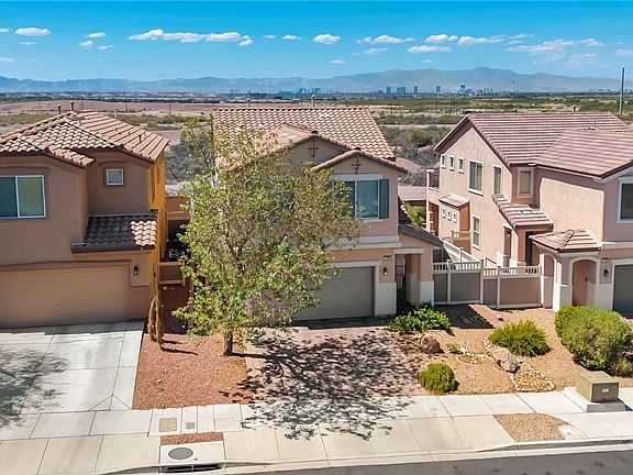 JUST REDUCED and PRICED RIGHT! Check out this adorable home that is located in Weston Hills. This almost 2000 square foot two story home is located on a Cul du sac and features STRIP VIEWS from your Backyard and PRIVATE balcony!! The PERFECT home to host New Years Eve, 4th of July or just to remind you WHY you moved to Vegas to start with! Crown Molding, Plantation Shutters, brand new landscaping in the backyard (turf, pavers and decorative rock) Tile floors downstairs, wood look floors upstairs, Newer matching appliances that will be remaining with the property, osmosis system in kitchen and a great Courtyard entry for added privacy and relaxation. The driveway features pavers that lead to a two car garage and the association fee is low. Home is near the bird preserve and paved trails to Lake Las Vegas.