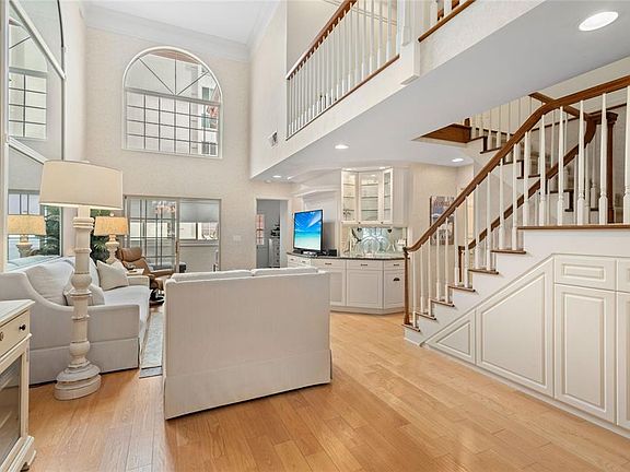 Welcome to coastal elegance and a rare opportunity to own one of only 27 townhomes in the highly sought-after Coquille community, nestled on the picturesque barrier island of Siesta Key, where you are steps to having your feet in the famous soft, white quartz sand that makes Siesta Beach famous. This spacious and light-filled, furnished 2-bedroom, 2-bathroom residence also includes a Florida room and an enclosed study that can easily function as a third bedroom, offering over 1,760 square feet of refined, maintenance-free living in an intimate, boutique townhome complex. Inside, soaring 17-foot ceilings and clerestory windows flood the open living space with natural light, creating a bright and airy atmosphere perfect for relaxing or entertaining. The kitchen features classic white cabinetry, granite countertops, and stainless steel KitchenAid appliances, all seamlessly integrated with the dining and living areas to offer a cohesive and functional layout. The main-level primary suite includes direct access to the enclosed lanai Florida room and a vestibule with both walk-in and reach-in closets that lead to the primary bathroom, complete with a new stacked washer and dryer for added convenience. Upstairs, a generous 15x13 guest bedroom includes a reach-in closet and is complemented by a hallway with both walk-in and linen closets. The beautifully renovated coastal-style bathroom features a soaking tub and shower combination, while an enclosed loft area currently serves as a third bedroom with a built-in set of drawers and a home office with built-in desk and cabinetry. Additional storage under the stairs, custom built-in drawers along the living room wall, and a private 7x7 storage room downstairs in the garage give you the space and feel of single family home living. The oversized, tandem garage located directly beneath the residence accommodates 2 to 3 vehicles and includes a designated grill area. The property also features electric hurricane shutters for peace of mind. Recent updates and ongoing community enhancements further elevate the value of this home. A new roof has just been completed, and the community is undergoing a stunning transformation scheduled for completion by year-end. Improvements include new exterior paint (Sherwin-Williams Alabaster on walls and Sherwin-Williams Underseas on the shutters and front doors), new garage doors (Sherwin-Williams Urbane Bronze), new modern exterior lighting, new fencing, and refreshed landscaping. The current owner has also ordered a new front door to be installed for this unit. Additional system upgrades include a 2019/2024 HVAC system and a 2024 electric tankless water heater. Outside, enjoy the best of the Siesta Key lifestyle with a private boardwalk leading directly to the beach, complete with chairs and chaise lounges for residents. The community also features a recently refinished 36x19 pool and spa area, along with an outdoor shower and restrooms. Coquille is pet-friendly and ideally located just a short walk or drive to the vibrant dining, shopping, and energy of Siesta Village.