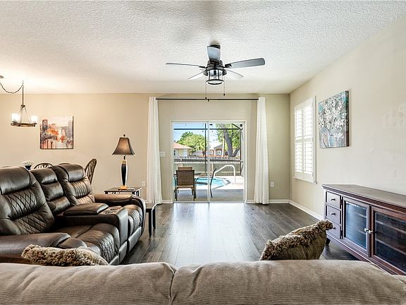 Stunning 3-Bedroom Home with Heated Saltwater Pool! Beautiful 2017 Maronda CBS-built home has open-concept floor plan w/ vaulted ceilings, plantation shutters, and hard floors. The kitchen has granite counters, dark wood cabinets, and spacious island for entertaining. Master suite features double vanity sinks for added convenience. Outside is a private backyard oasis, w/ new 2024 heated saltwater pool, screened-in enclosure, and fully fenced yard. Enjoy fruit trees in the backyard! Has 2-car garage, hurricane shutters, & negotiable furniture. Near Barber St. Sports Complex, parks & amenities.