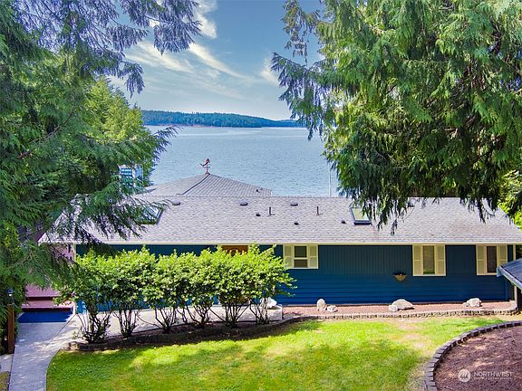 Stunning low bank waterfront property w/ private dock & expansive, breathtaking views is the perfect getaway! Be surrounded by an abundance of natural beauty & picturesque shoreline, w/ stairs to the beach & a permitted buoy. Enjoy spectacular sunsets from this tranquil property, while viewing the islands, ferries & shipping lanes. Kayak, jet-ski, fish and boat from your own backyard! Water view spacious primary bedroom w/ ensuite bath, large walk-in closet. Bonus room w/ water view & 2nd bath also on main floor, plus a partially finished bonus room w/ outside entrance & gorgeous water view at lower level - a perfect spot for art, exercise, or office. Carport, garage, greenhouse & workshop too! Peace & privacy await - a rare opportunity!
