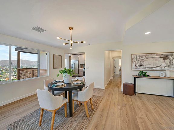 Nestled in the desirable Mt. Merritt area of El Cajon, this stunning property offers breathtaking 180-degree panoramic views that captivate from sunrise to sunset. Designed for convenience, the home lives like a single story with a thoughtfully planned main floor featuring a sleek, modern kitchen with Euro-style cabinets, quartz countertops, and brand-new luxury vinyl flooring that flows seamlessly throughout. The main level also includes three spacious bedrooms, a light-filled living room, and convenient laundry. The downstairs bonus room offers incredible flexibility with its own full bathroom, living area, and private entrance—ideal for a rental unit, guest quarters, or a separate workspace. Outdoor living is an absolute delight with multiple viewing decks, a sparkling pool, and endless opportunities to entertain or unwind while soaking in the sweeping views.Bathed in natural light and meticulously updated, this turn-key home is the perfect blend of style, functionality, and charm.