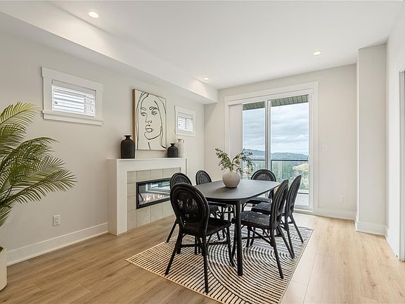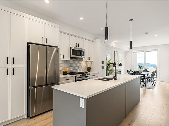 Welcome to 1161 Moonstone Loop in Bear Mountain’s South Point community! This bright 2 Bed, 3 Bath END UNIT townhouse offers stunning mountain views and a flexible, open-concept layout. The chef-inspired kitchen features stainless steel appliances, two-tone cabinetry, and a spacious island. The living and dining areas can be arranged to suit your lifestyle—dine by the fireplace or relax and enjoy the view. Upstairs, a bright skylight adds natural light, and the primary suite offers oversized closets and a spa-like ensuite with radiant floor heating and a glass shower. The second bedroom also includes its own ensuite, and a full laundry room is conveniently located upstairs near both bedrooms. Enjoy two private balconies and a low-maintenance backyard. The tandem double garage provides parking, storage, or space for a gym/office with its own entrance. Just one minute to the highway for a quick Victoria commute!