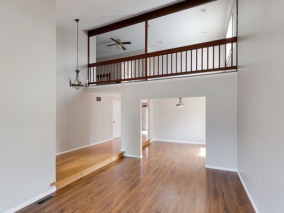 Nice size 2story offering 4 bedrooms with open floor plan! Vaulted ceiling in living room and dining room area. Freshly painted throughout! Many possibilities for the loft area overlooking the living room. Eat-in-Kitchen has ceramic tile floor, new stove with air fryer and stove hood! Some amenities include vaulted ceiling, canned lighting, ceiling fans, storage shed and newer furnace. Updated windows and vinyl siding. Architectural shingled roof. Sliding glass doors off kitchen leads to good size deck overlooking large fenced yard! Close to Bartlett Park District, Apple Orchard Golf course and Bartlett train station.