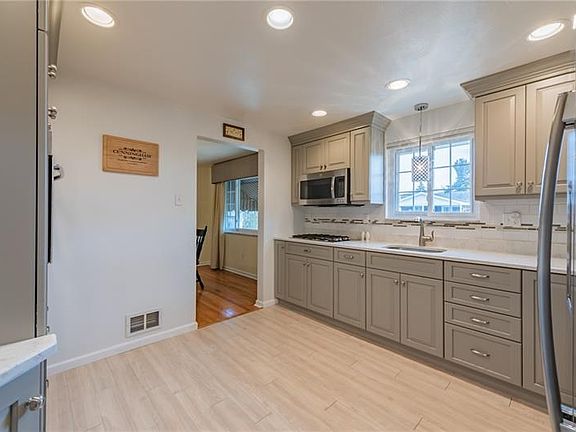 Enjoy a fabulous home with plenty of living space, beautiful updates, a welcoming floor plan and brick exterior which is maintenance free!~The two car garage and large cement driveway allows for plenty of parking for family and guests~The covered front porch is great to relax & unwind & perfect to receive deliveries~The kitchen is spectacular with stainless appliances, beautiful quartz countertops, abundant cabinetry, recessed lighting & access to the backyard~The granite countertop in the bathroom allows for extra counter space & tasteful ceramic tile completes a great look!~There is hardwood flooring on the first floor & most of it is exposed~The living room boasts a corner fireplace & is open to the dining room with both rooms offering large windows for a light & bright entertaining spaces~Three bedrooms with generous sized closets & exposed hardwood flooring complete the first floor~The LL offers a huge laundry & storage area & a large entertainment space for a future family room!