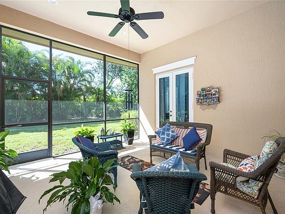Beautiful 3BR, 2.5BA home in the private gated community of Riverwind. Features impact glass, electric roll-down hurricane screen on lanai, plantation shutters, and crown molding. Expansive owner’s suite with two closets and abundant natural light. Enjoy resort-style amenities including clubhouse, tennis, fitness center, and pool all in a serene, well-maintained setting. Move-in ready and built for comfort and peace of mind! Sizes approx. subject to error.