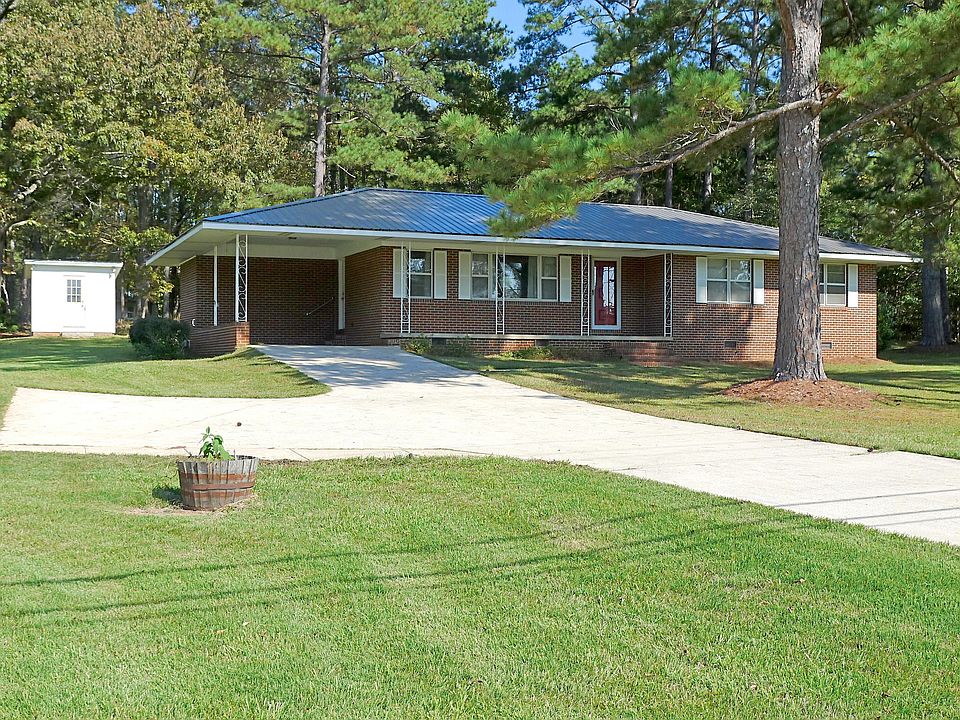 One-level immaculate brick home on beautiful lush grounds in super nice area just across from Jim Pearson School. REAL HARDWOOD FLOORS in bedrooms, living room, and dining room. Plus there's new vinyl plank flooring in comfy den and kitchen. Den has gorgeous pine walls. Brand new metal roof. New plumbing. New interior paint. Bathrooms are all ceramic tile. Big eat-in family kitchen. Laundry just off kitchen. Long front porch and large back patio. This home has welcomed and comforted so many - now it's all spiffed up and ready for it's next family and the generations to come! You'll be so impressed with it's upgrades - don't miss it!